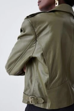 Karen Millen Leather Tweed Panel Detail Collarless Biker Jacket