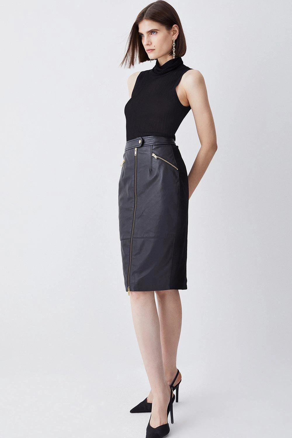 Main: 100% Responsibly Sourced Leather. Do not clean. Model wears UK 8/US 4. Model height: 5″9. Length measurement: 66cm.
