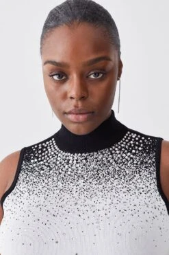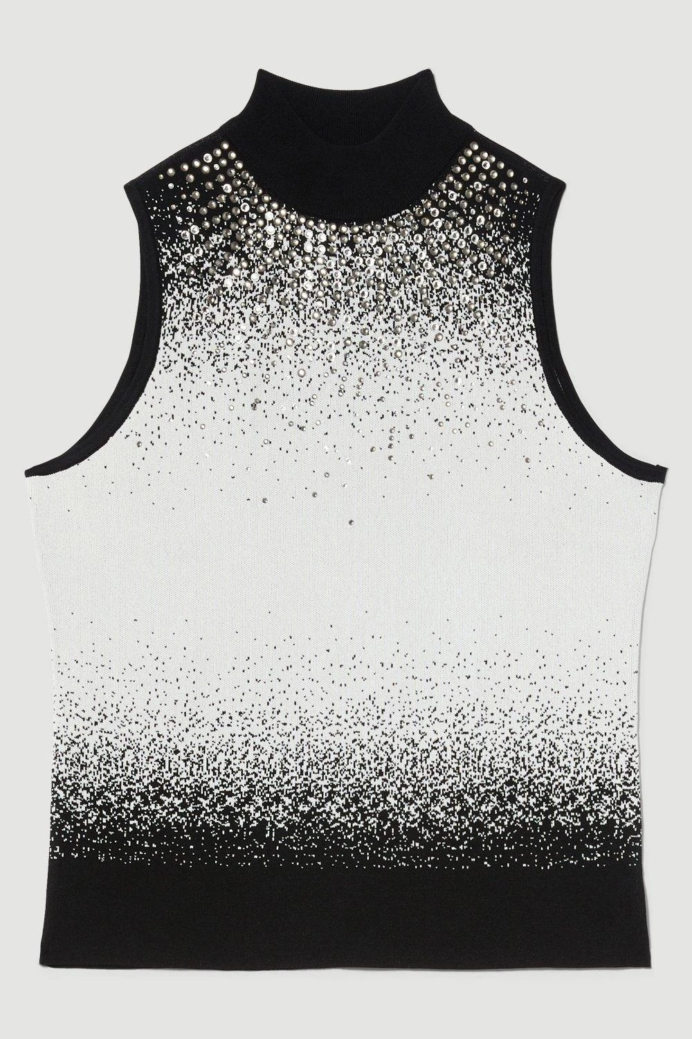 Embellished with glimmering sequins for a glamorous touch, this high neck knit top strikes the perfect balance between smart and casual. Woven with a unique, ombre-effect pattern, this top promises to stand out from the crowd.
