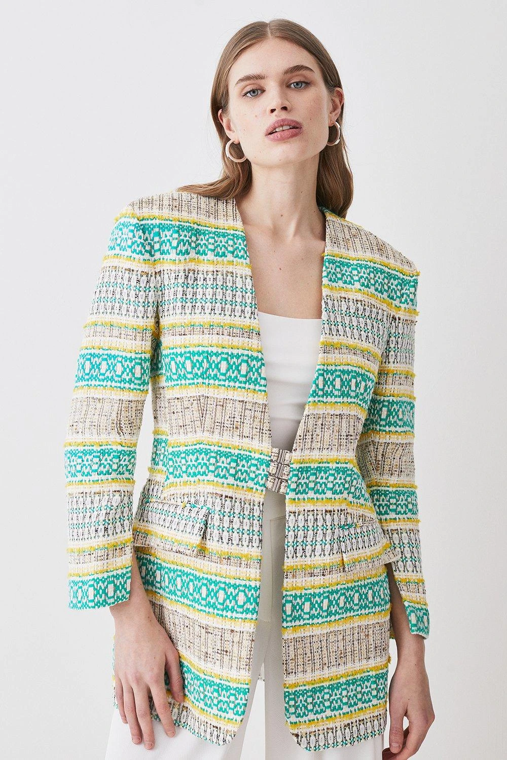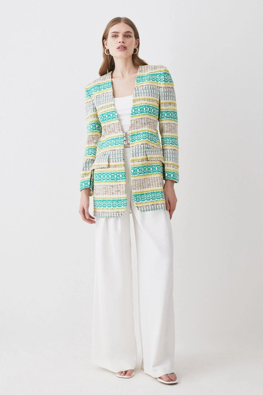 Karen Millen Signature Italian Tweed Collarless Jacket