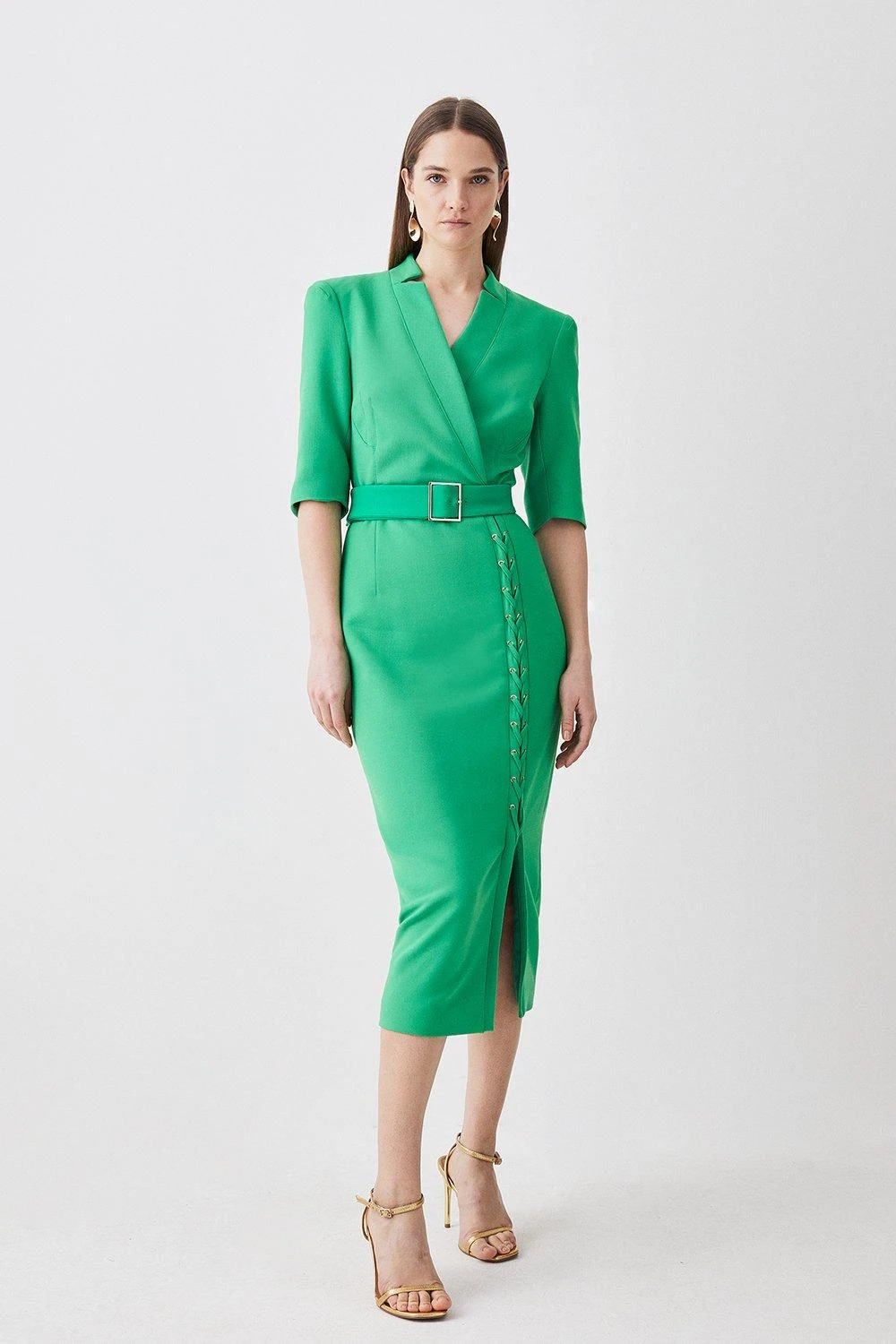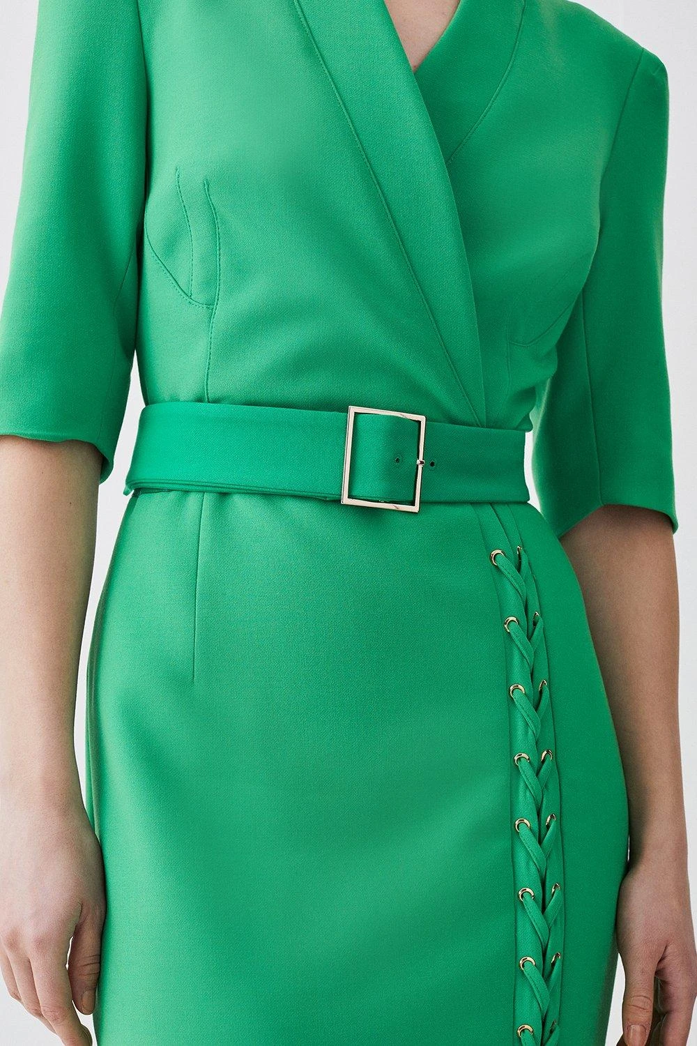 Main: 33% Polyester, 31% Viscose, 30% Recycled Polyester, 6% Elastane. Lining: 100% Polyester. Dry clean only. Model wears UK 8/US 4. Model height: 5″9. Length measurement: 126cm.