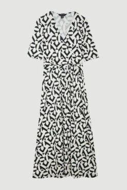Karen Millen Tall Half Sleeve Geometric Printed Jersey Wrap Midi Dress