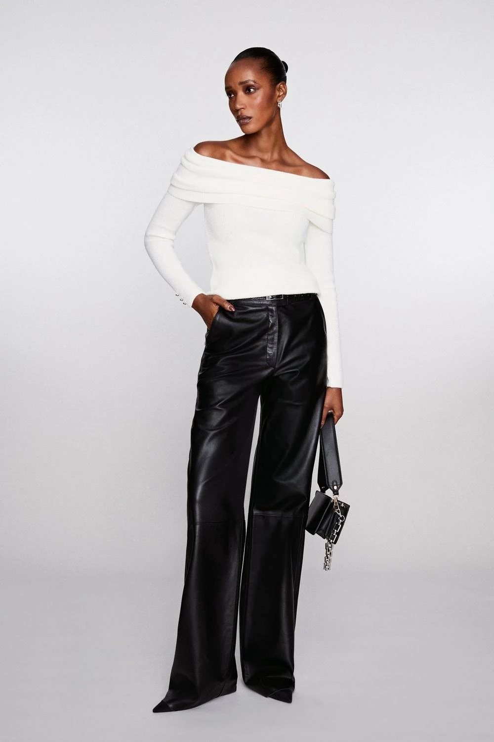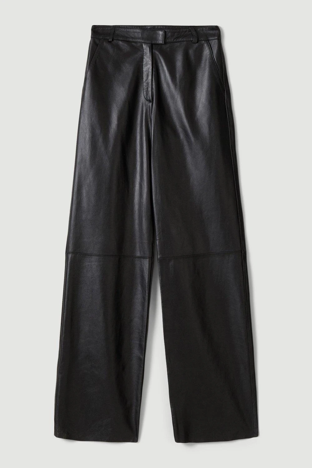 Main: 100% Responsibly Sourced Lamb Leather. Lining: 100% Polyester. Specialist leather clean only. Model wears UK 8/US 4. Model height: 5″9. Inner Leg Length measurement: 97cm.