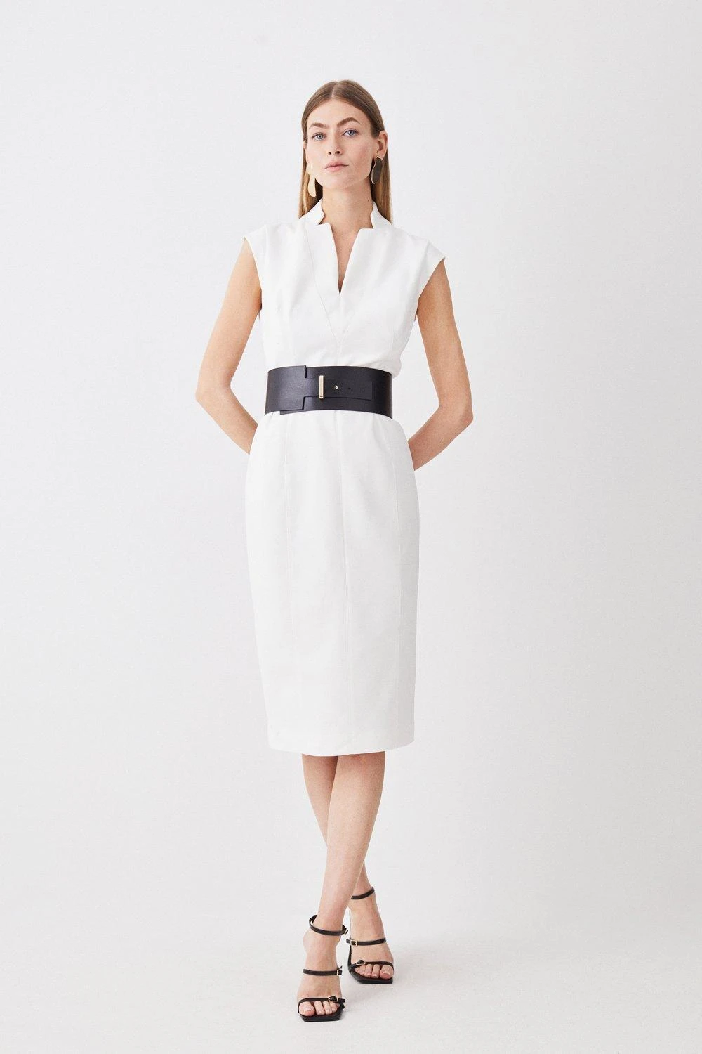 Karen Millen Tall Structured Crepe Forever Cap Sleeve Belted Dress