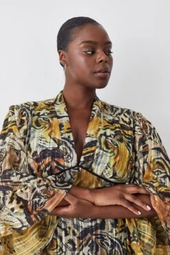 Karen Millen Plus Size Tiger Printed Drama Kimono Woven Maxi Dress