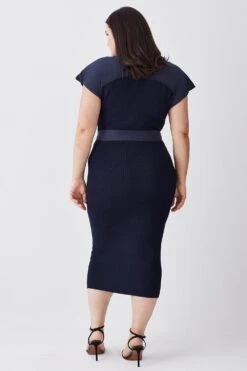 Karen Millen Plus Size Zip Neck Short Sleeve Belted Midi Dress