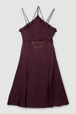 Karen Millen Plus Size Textured Satin Lace Hem Midi Slip Dress
