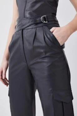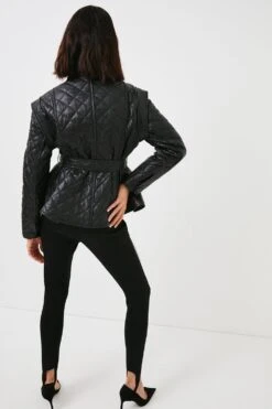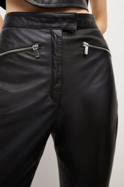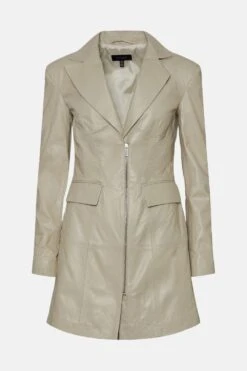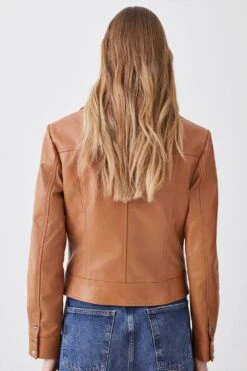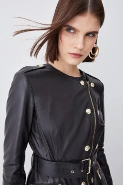 Karen Millen Leather Multi Stitched Collarless Fitted Jacket